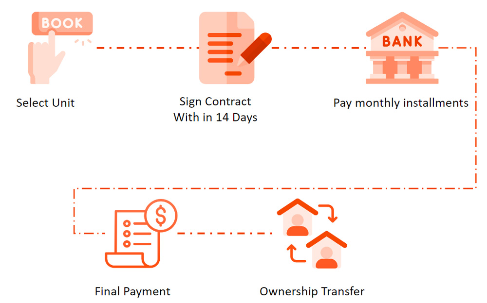 Once you make a decision to purchase any condo unit, you are required to sign a reservation agreement with a booking payment by cash , cashier cheque, credit card or overseas currency funds transfer. This ensures the reserved unit is not offered to another purchaser. The contract signing and payment will be made within 7 days after booking date by overseas currency funds transfer.